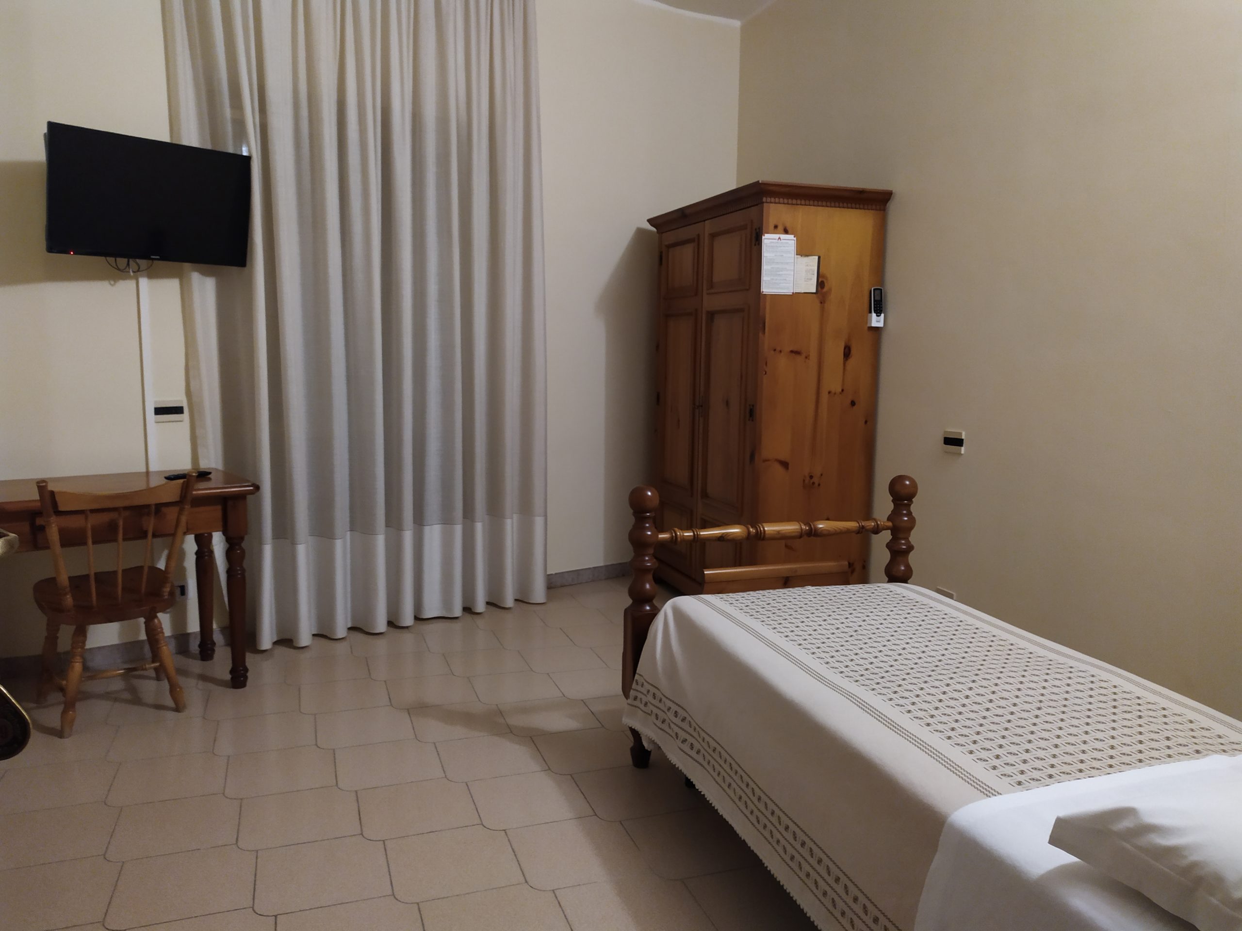 Camera singola munita di letto standard, armadio, scrivania,TV, bagno privato, asciugacapelli, kit cortesia.