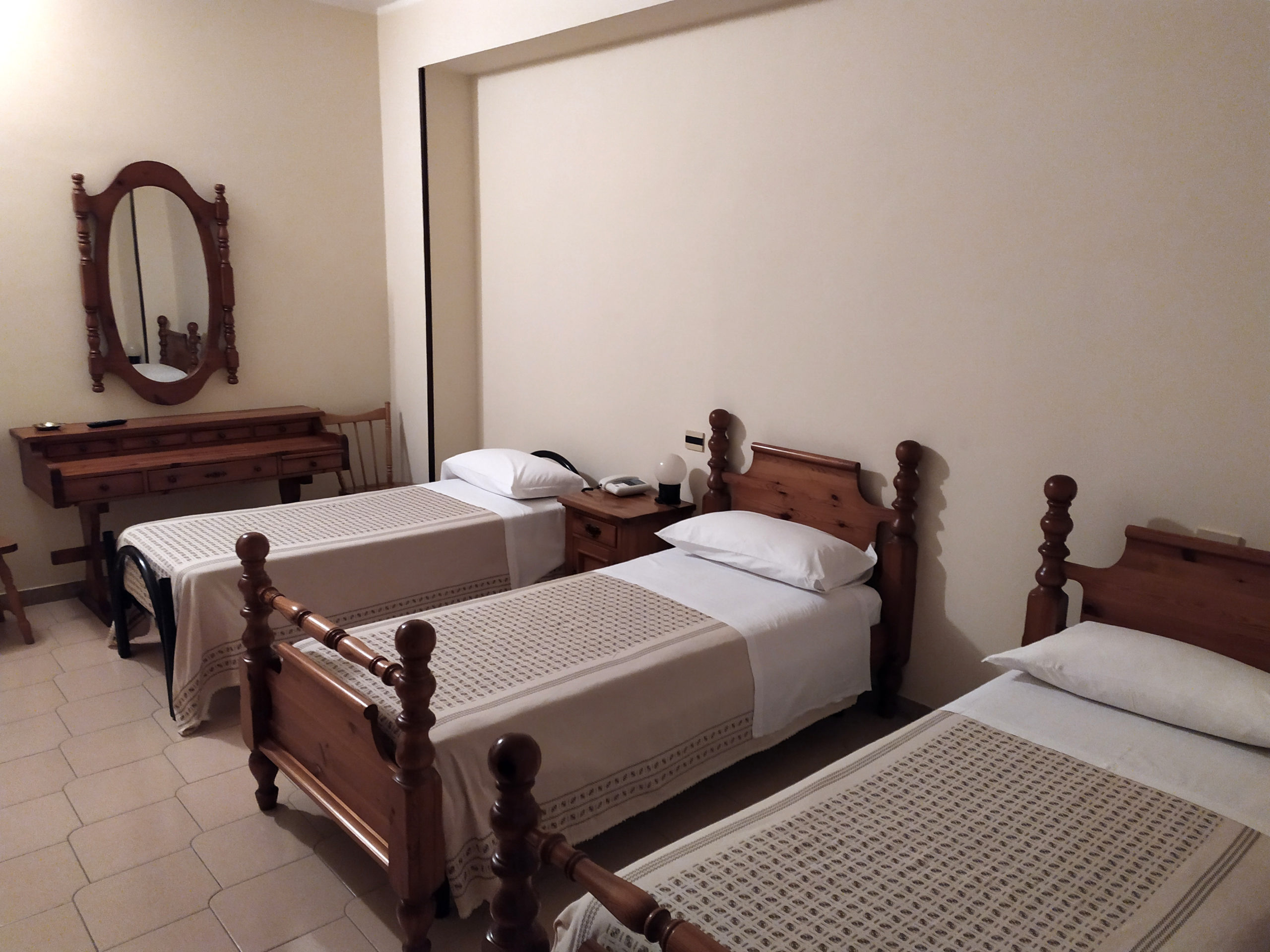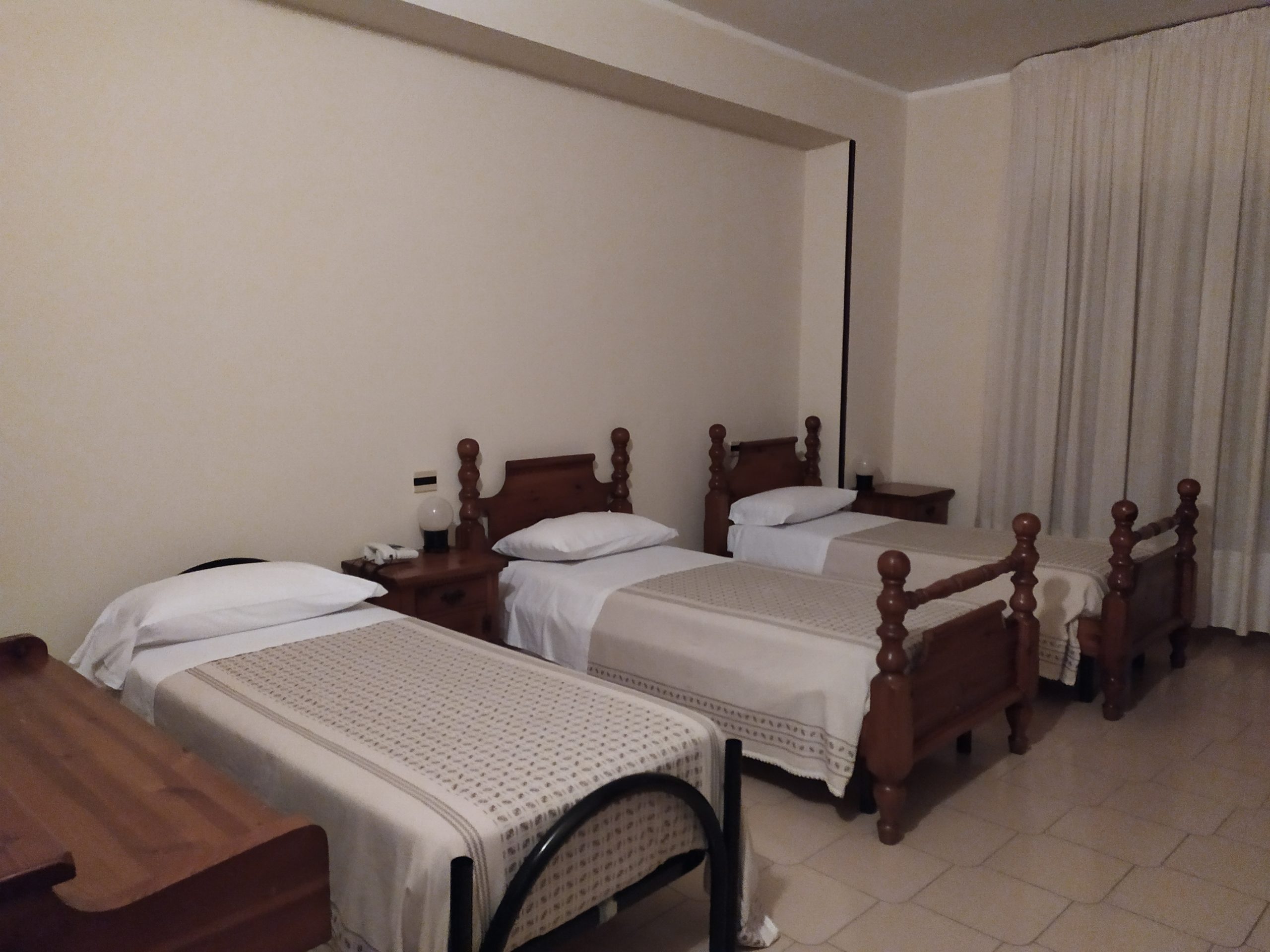 Camera tripla munita di letti singoli standard, armadio, scrivania,TV, bagno privato, asciugacapelli, kit cortesia.